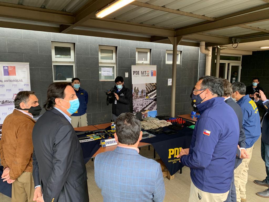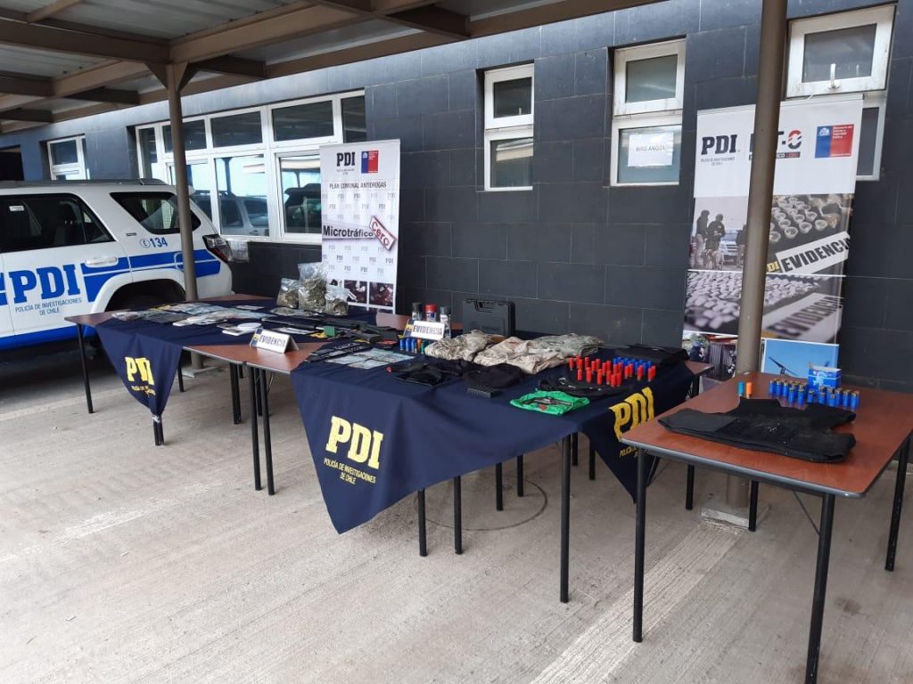 En el procedimiento, el cual consistió ejecutar órdenes judiciales de entradas y registros a domicilios ubicados en comunidades de Ercilla, además de recuperar vehículo antes señalado, se incautó dinero en efectivo, un chaleco antibalas, armamentos, municiones y droga.