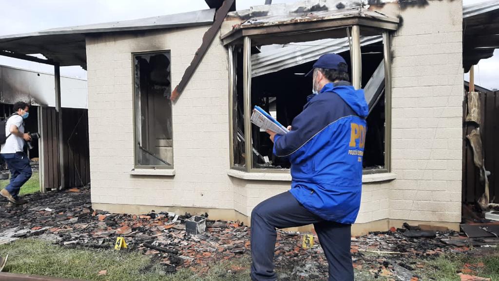 Posterior a ello, los atacantes se dirigieron hasta unas viviendas en construcción para la posterior quema de las mismas. En el lugar, se encontró un panfleto con una reivindicación mapuche.