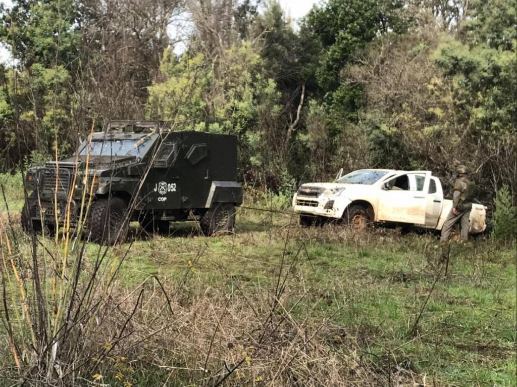 Personal de la Prefectura COP “Araucanía” y el Gope concurrieron en apoyo y efectuaron un amplio operativo de rastreo hallando oculta en un bosque cercano la camioneta utilizada por los antisociales la cual registra encargo vigente por el delito de robo con intimidación ocurrido en el mismo sector el 18 de diciembre en 2020.