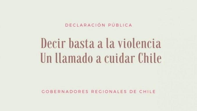 Por medio de un comunicado las y los Gobernadores Regionales de Chile han pedido un alto a los actos de violencia.