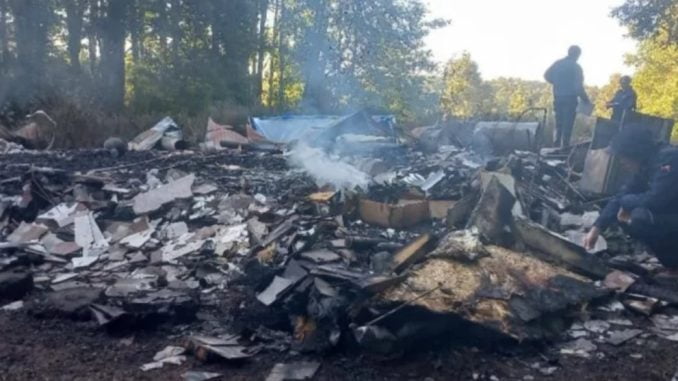 El kilómetro 5 de la ruta S-55 fue el lugar testigo del hecho envuelto en llamas, destruyendo por completo un inmueble, dónde la Policía de Investigaciones (PDI) encontró un lienzo con el mensaje de “No habrá paz”.